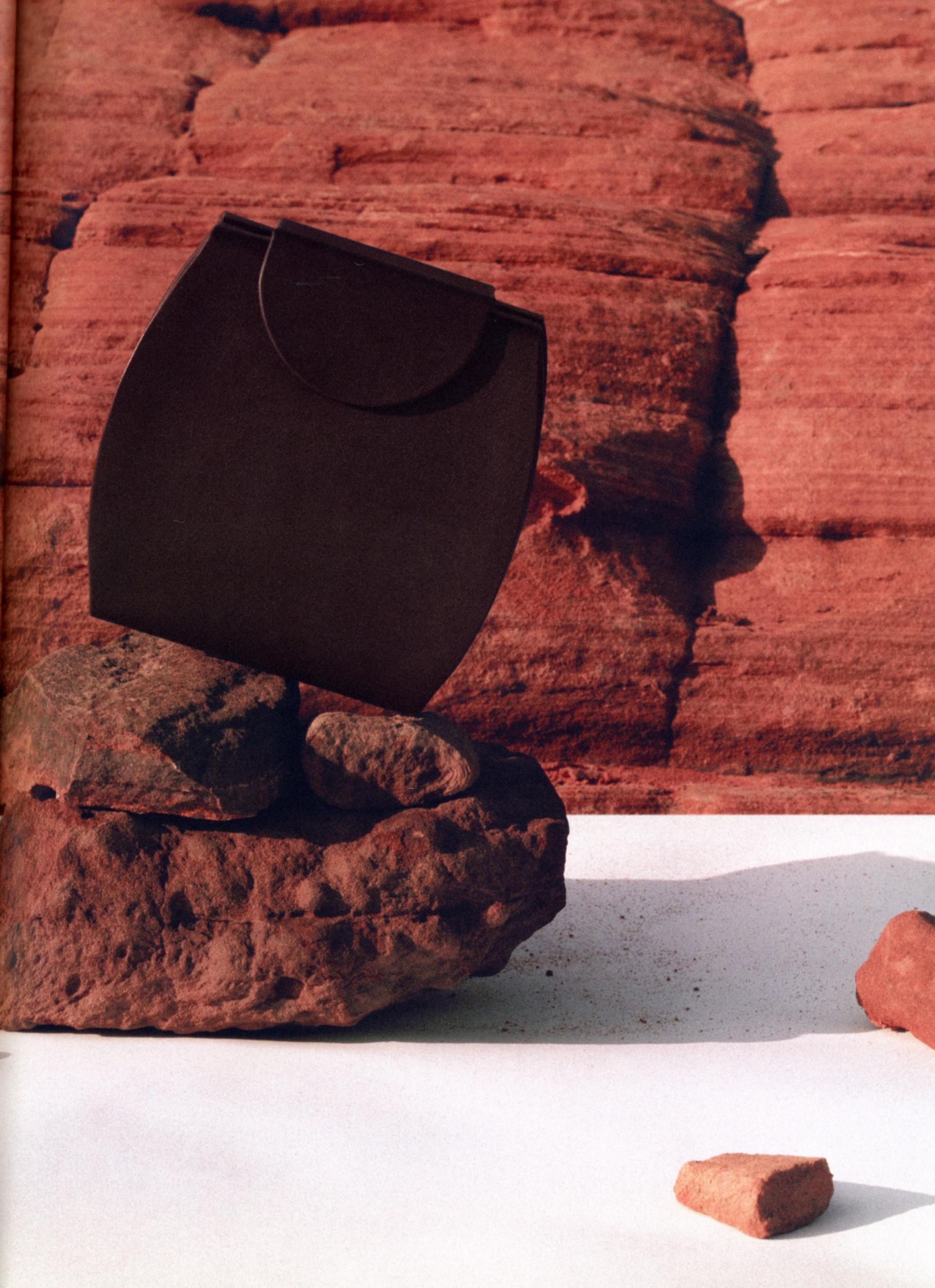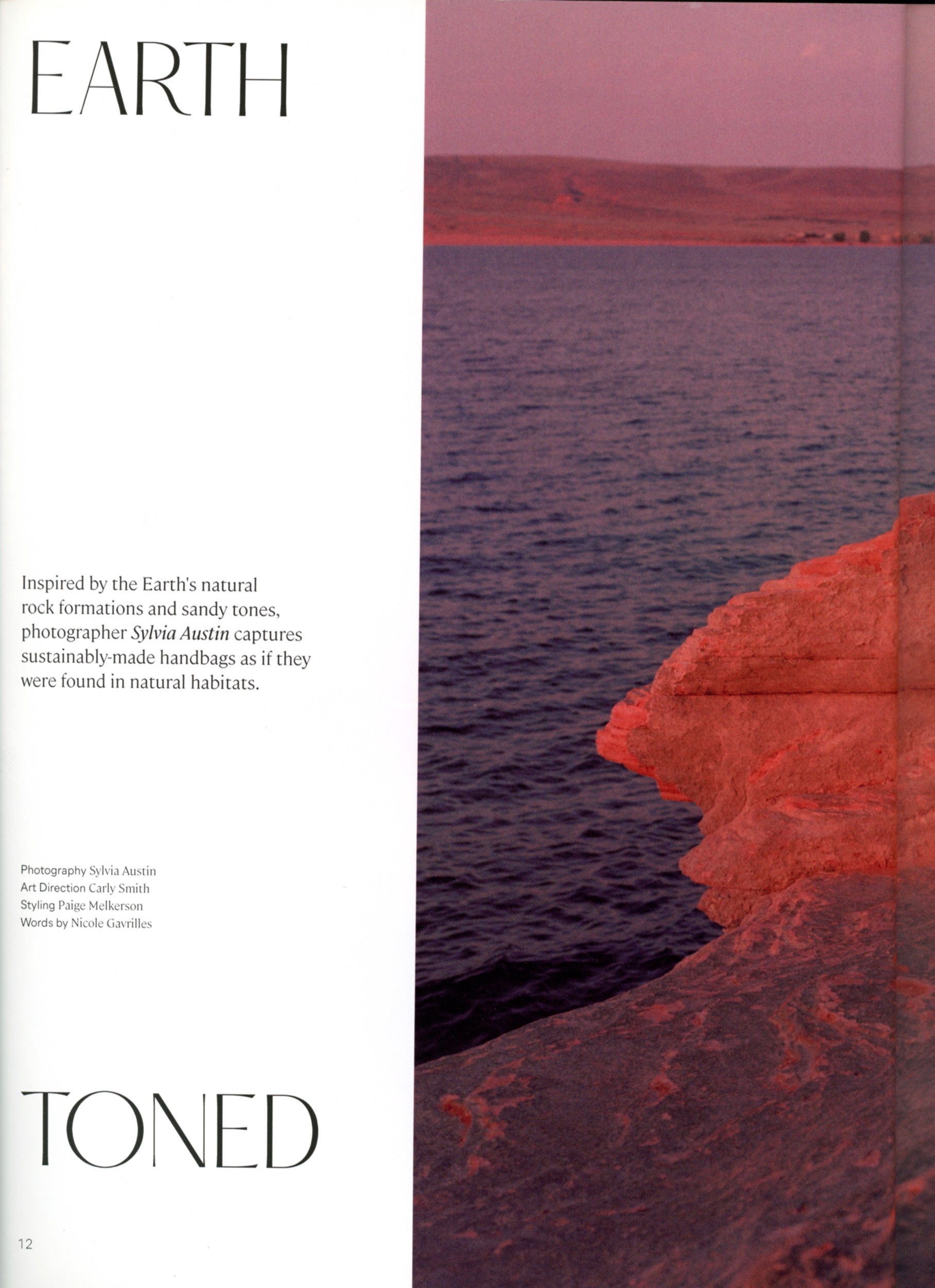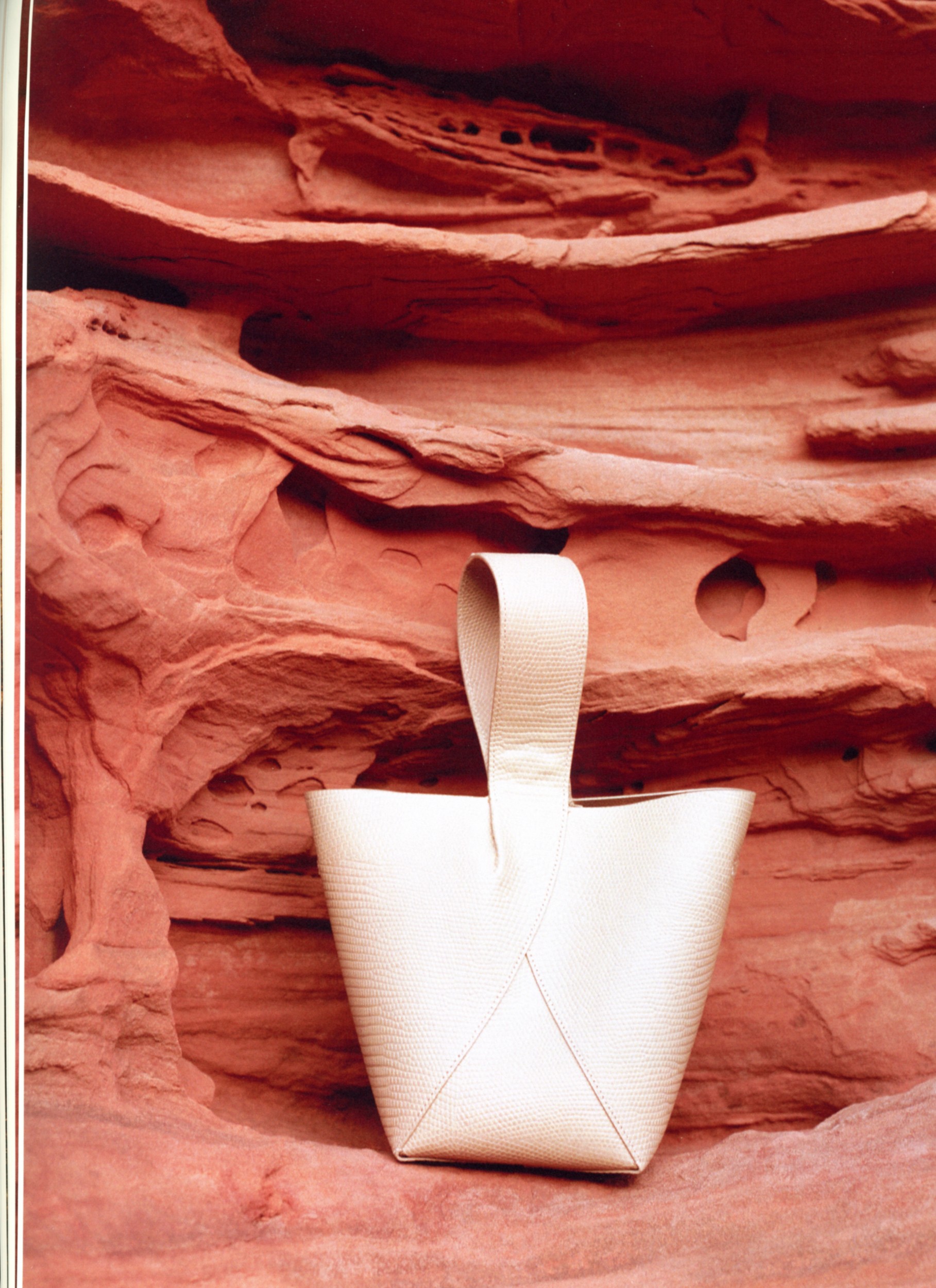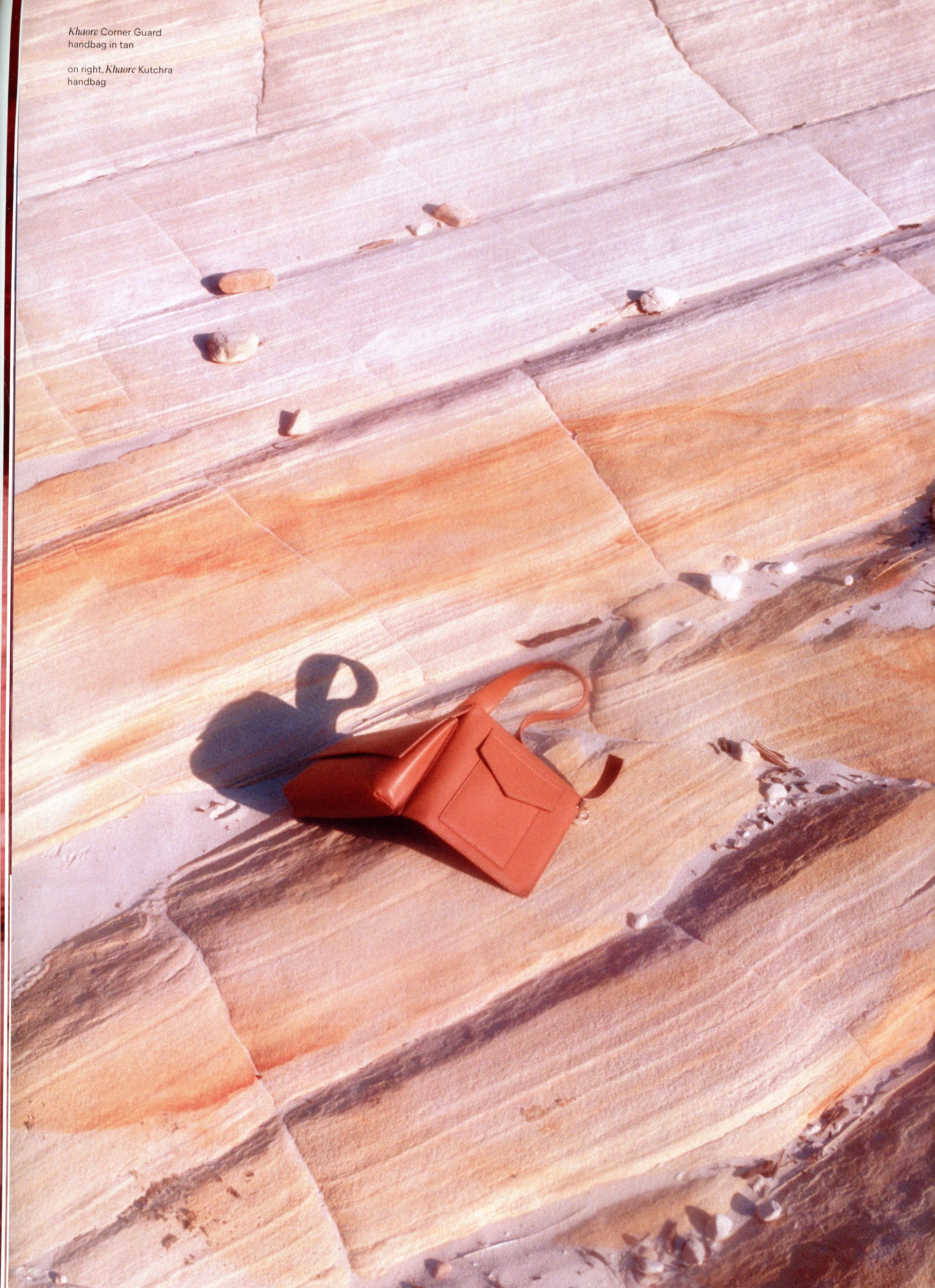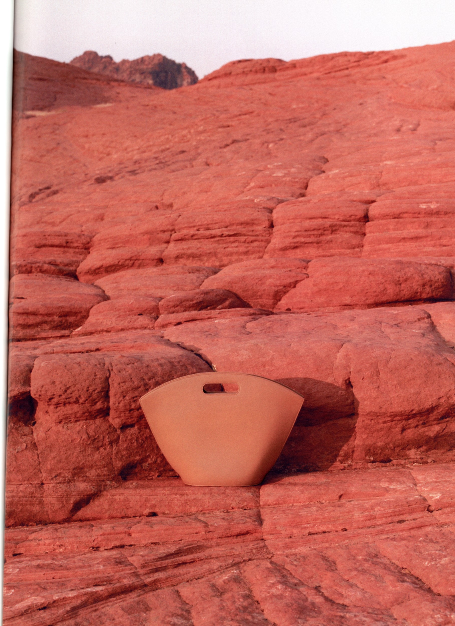 Inspired by the Earth’s natural rock formations and sandy tones, photographer Sylvia Austin captures sustainably-made handbags as if they were found in natural habitats.